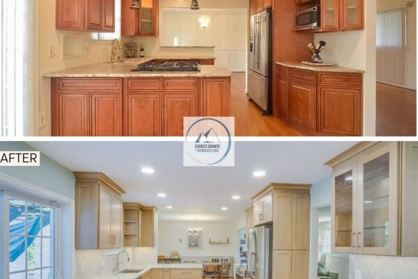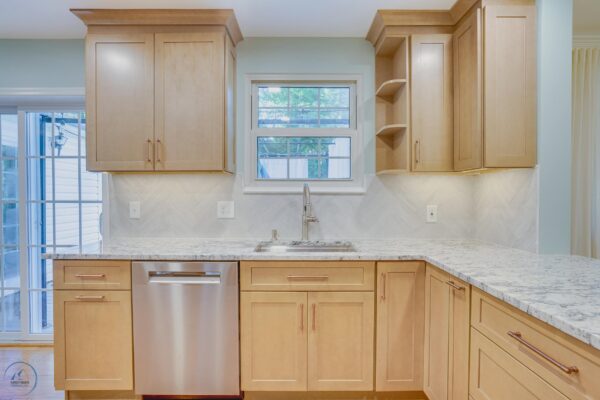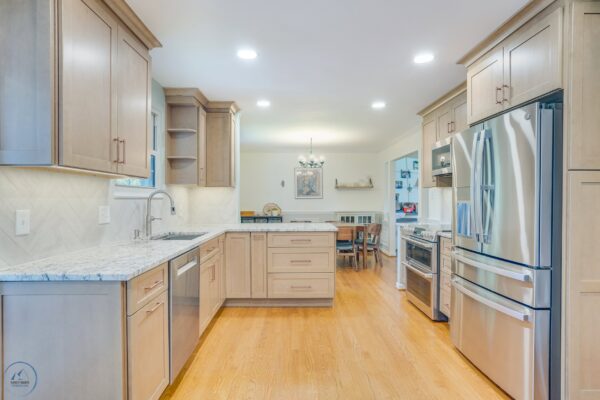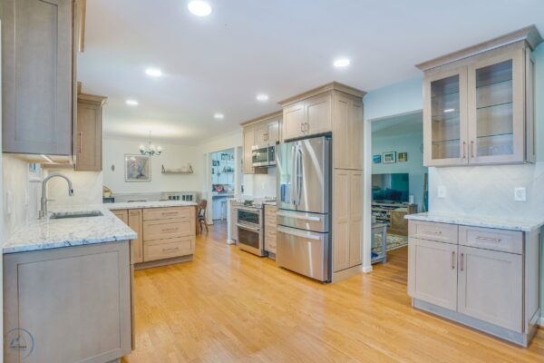 The kitchen required a complete transformation to enhance both functionality and style. We installed new Fabuwood cabinets and granite countertops, complemented by elegant backsplash tiles. Recessed lighting brightened the space, while converting the gas stove to an induction model streamlined cooking efficiency. This full kitchen remodel beautifully combines modern design with practical improvements.